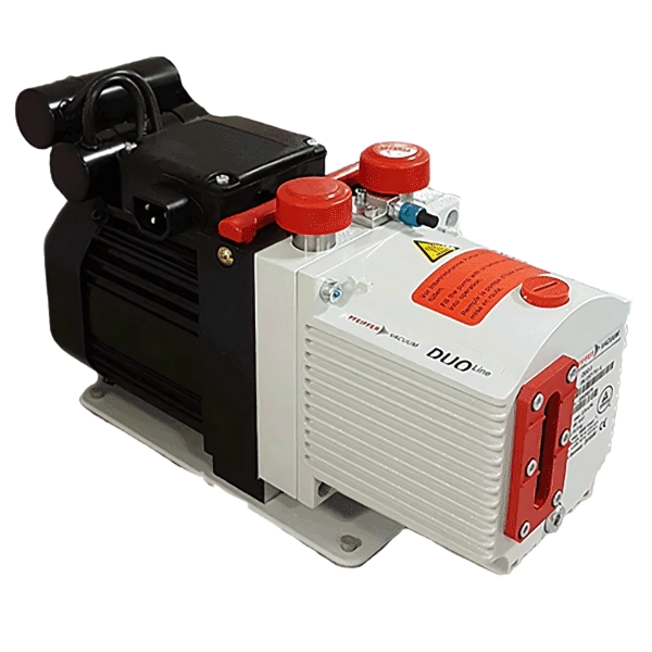 Gracias a su caudal nominal de 3 m³/h y su presión final de hasta 3 x 10⁻³ mbar, la DUO 3 Line garantiza un bombeo eficiente en laboratorios, sistemas de espectrometría de masas, análisis térmico, microscopía electrónica y más. Su estructura metálica reduce la vibración y mejora la estabilidad durante el funcionamiento prolongado. Además, cuenta con válvula antirretorno, ventilación optimizada y motor monofásico de fácil integración.