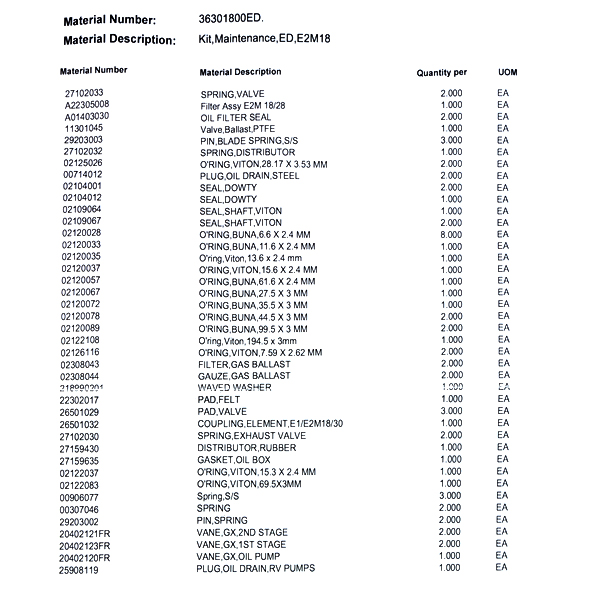 No arriesgues el rendimiento de tu bomba de vacío. Confía en el Major Kit E2M18 para realizar mantenimientos mayores con resultados garantizados y confiables.